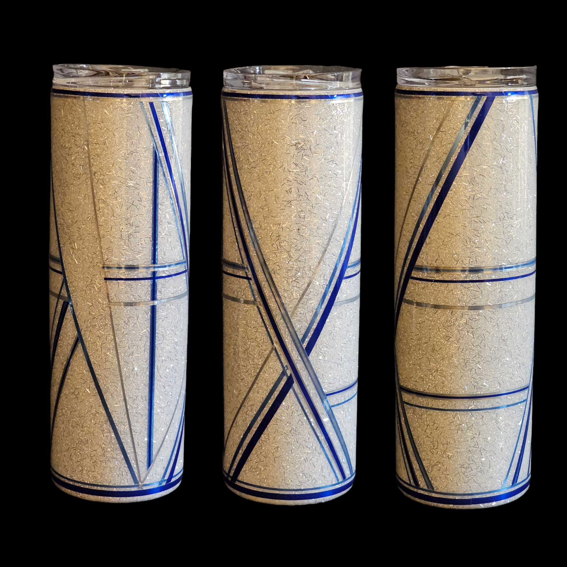 30oz stainless steel insulated cup decorated with blue pinstripes