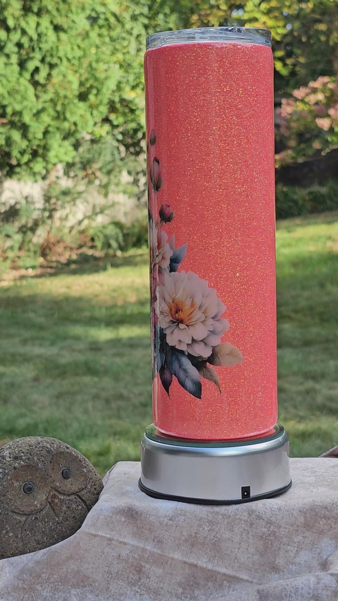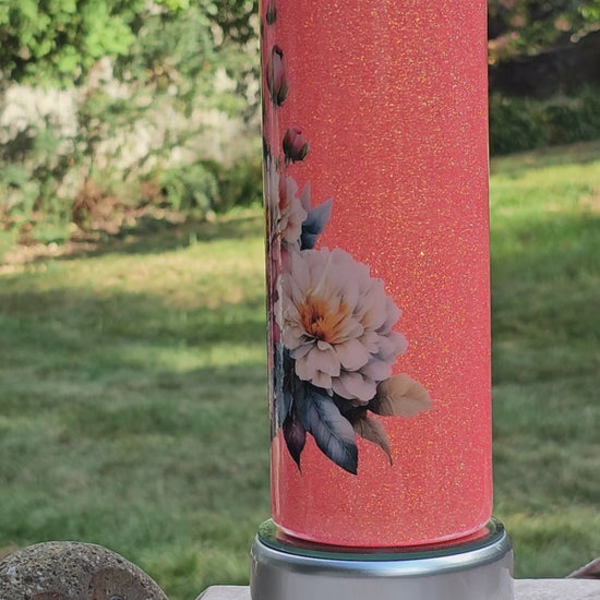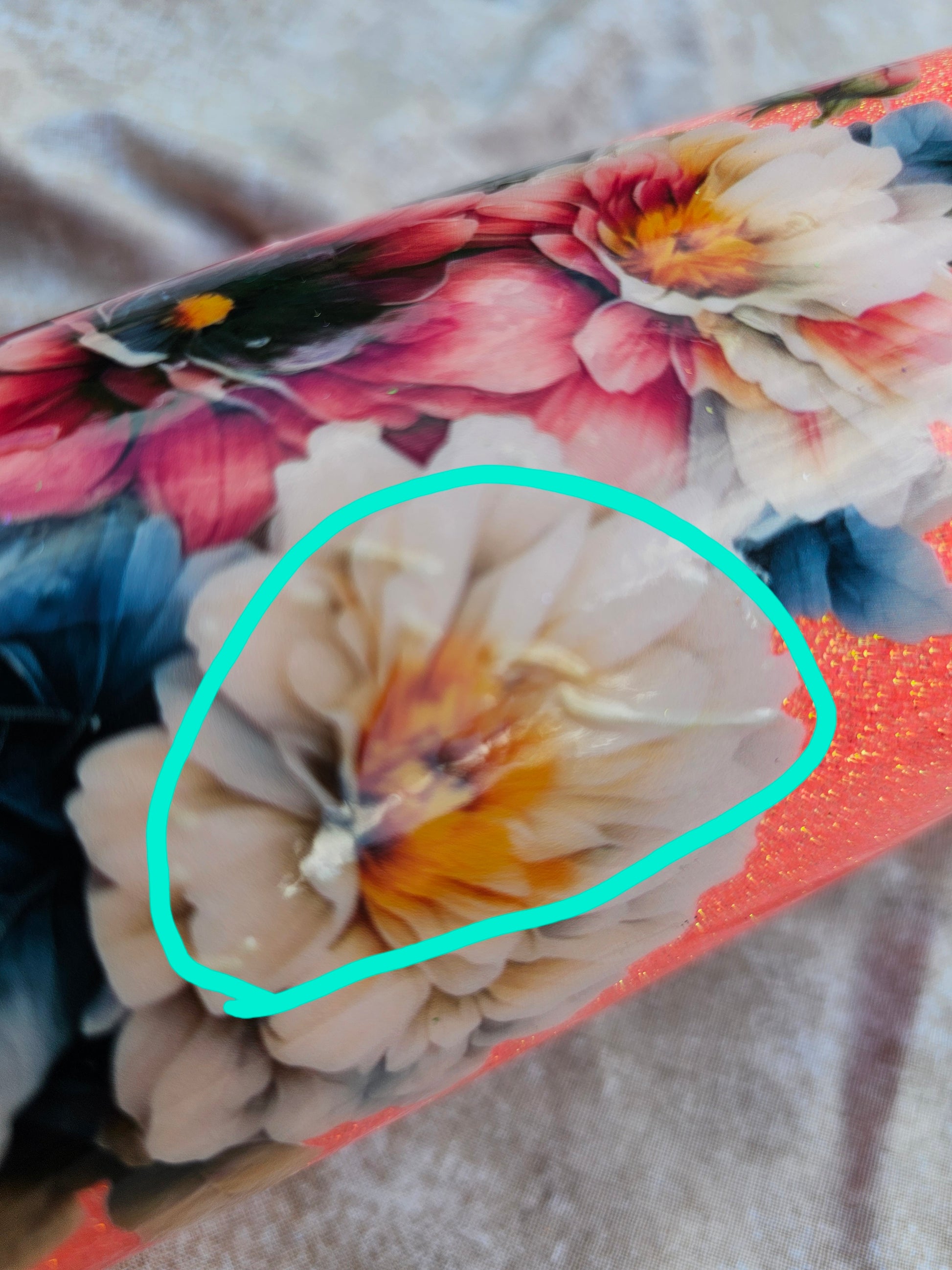 30oz stainless tumbler. This is a gorgeous cup, but the decal wrinkled after top coating. This cup is therefore on sale. Glitter with UV DTF decal.
