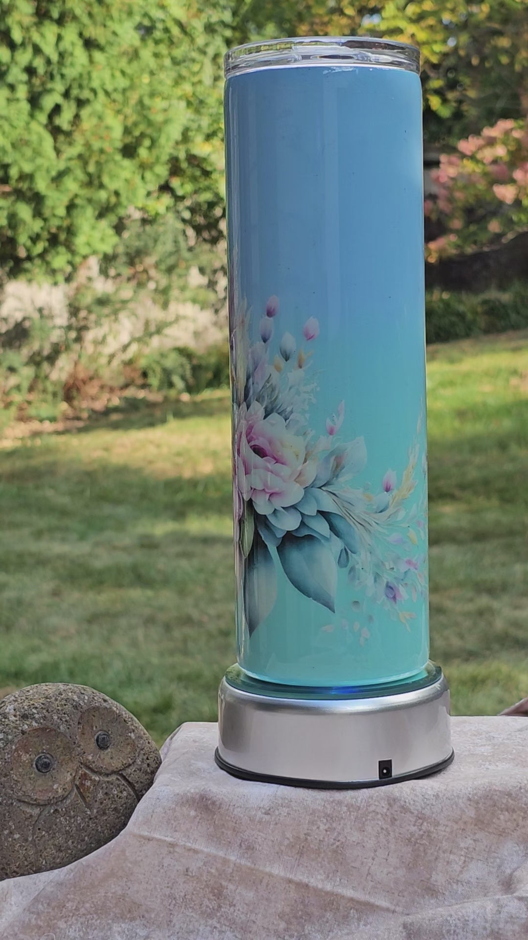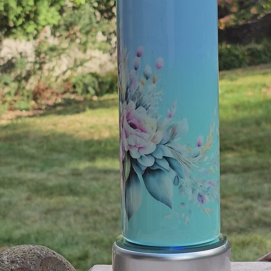 30oz stainless tumbler. This is a gorgeous cup, but the decal wrinkled after top coating. This cup is therefore on sale. Paint ombre with UV DTF decal.