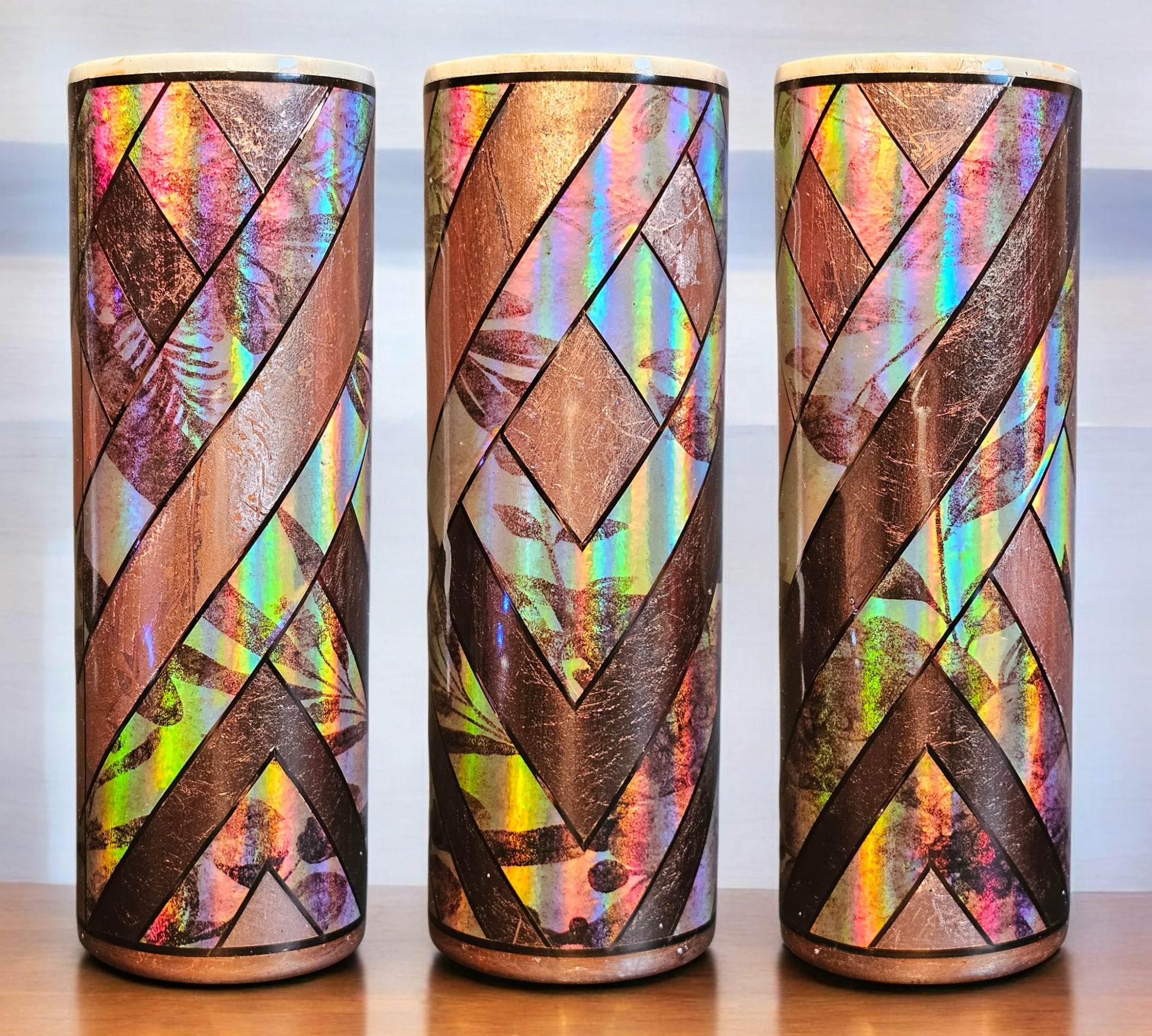 30oz stainless tumbler. Holographic fall leaves with foil.